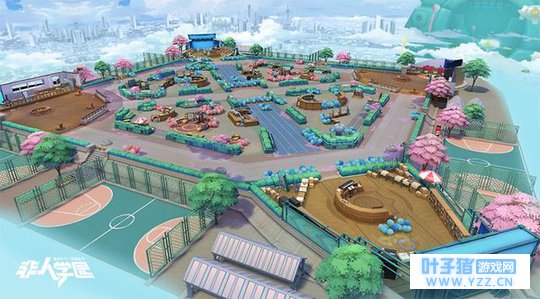 激燃创新竞技 ,拒绝无聊膀胱局 大家在下图中也看到《非人学园》独具创意的缤纷学园战斗地图了~球场、跑道、长椅、鲜花与气球一应俱全,还有被装饰为体育场、图书社的红蓝BUFF区。在游戏过程中,细心的玩家还会发现背着书包,拿着学具的"小兵",很多野怪也是很卡通很可爱的文具形象!超多二次元彩蛋遍布在战场里,就连推塔、打野都变得颇有乐趣~