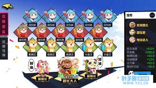 应援团长 :非洲酋长/电玩达人/国宝君 (应援团团长/副团长解析: 非洲酋长:单次受到的伤害超过15%的当前生命值时,移除自身所有的负面状态,4秒内增加自身8%的移动速度,并回复12%已损失生命值,冷却时间30秒。这个也不用多说了,防止被秒,又能加移动速度又能加血,哪里找的到这么好的团长!我仿佛听到阿蛟说:“我有一颗浪的心” 电玩达人:在双方一塔/二塔/高地塔范围内分别获得25/50/80物理防御盒法术防御,同时获得1%每秒的生命恢复速度,这个不必说增加物防法防可以保证前期的生存,配合1%+被动技能1.5%+应援团血包妹的生命恢复,想想都可怕!还要回家吗?玩阿蛟要有一颗浪的心,前提是不能太浪,哈哈哈哈! 国宝君:释放技能命中敌方英雄将增加10点最大生命,最多增加40层,当达到满层后额外获得200点生命值,想想阿蛟的二技能+一技能,国宝君的效果立即呈现出来,满满的600血 ) 应援团员 :5面包男(系统送),5板锅汪,5血包妹 (系统送) 局内出装 :防滑雨靴、琉璃塔、铁拳制裁、尖刺路障、便携药箱、喵喵冲锋衣 日常技能 :加速器或瞬身玉,个人喜欢用加速器,因为加速器冷却时间是92S,能跑能追。 解析:在出装方面 第一件装备(防滑雨靴) 是 阿蛟 的首选,可以增加 阿蛟 前期法防方面的不足,减少法师英雄的消耗及增加韧性; 第二件装备(琉璃塔) 既能增加85攻击+500生命+15%冷却+20物穿,小编主推的唯一一件输出装备; 第三件装备(便捷药箱) 增加自己血量及回血能力,是一件核心装备! 第四件装备 ( 尖刺路障 )避免被远程英雄风筝能力及增加反杀能力和 第五件装备(喵喵冲锋衣) 不多说人越多物防及法防提升比例越多,保证 阿蛟 的生存能力、抗压能力和续航能力,充当队伍团战“搅屎棍”的角色。 为什么列出第六件装备呢? 那是因为上述第四件及第五件装备属于后期装备,要是我方强势的话,小编个人会出 (铁拳制裁)代替(尖刺路障) 这件装备 ,阿蛟 属于频繁使用技能消耗敌人的肉盾,技能又自带减速效果加上 (铁拳制裁) 装备属性粘人效果 , 让敌人攻速及移动速度降低 40-50% ,大家是不是找到亮点,自己去体验!