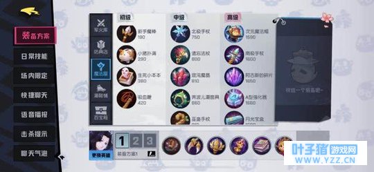 【攻略二:逆风出装】 逆风出装与顺风出装相比变化不大,牛津鞋可以说是法师输出必备鞋子,能增强法术穿透。逆风出装顺序为:牛津鞋、次元魔法帽、南极手杖、五三培养手册、黑暗法杖和大圣面具。其中,逆风局内装备总体变化2件,一是次元魔法帽提高回蓝,更好让我们使用技能无脑释放,还有一件就是黑暗法杖提供法穿,提升逆风局下的输出能力和应对前排坦克的能力。