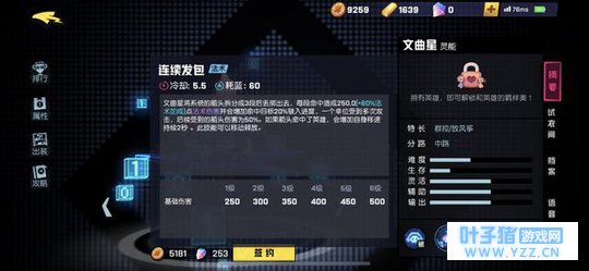 其次便是主动技能——连续发包。文曲星将系统的箭头拆分成3段后丢掷出去,每段命中造成250.0(+60%法术加成)点法术伤害并会增加命中目标20%骇入进度,一个单位受到多次攻击,后续收到箭头伤害为50%,如果箭头命中了英雄,会增加自身移速持续2秒。此技能可以移动释放。也就是说三段技能每段增加20%骇入进度,若是再配合大招,可以拥有超级棒的输出喔。