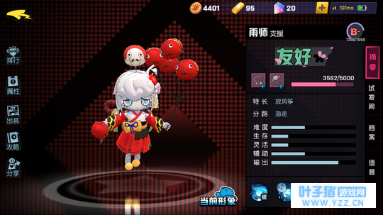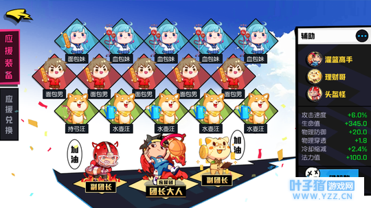 雨师应援 因为我不怎么肝,也不是氪金玩家。所以摆这张图只是想说明三个队长位置的应援选择——在游走的过程中保证生存与经济。至于上面三排具体的选择..看下面。 其他应援位的话。蓝色位置和绿色位置选固定收益拿金币和经验的。避免在游走的时候缺失经济。红色的位置就拿面包男也是可以。 出装: