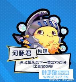 【副团长】河豚君 进出草丛后的下一次普攻额外造成对方当前生命值4%的伤害,冷却时间8秒。河豚君提升我们对线时的普攻伤害。副团长利用河豚君的特性,可以让顺风耳的第一下输出得到增强,对于敌人有很大打击的。