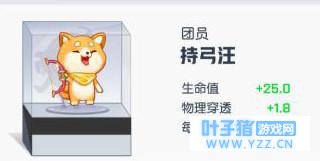 黄色应援队 持弓汪:生命值+25.0 物理穿透+1.8 每5秒回血+2.1 生命值提升的同时,还能每5秒回血,回得并不是很多,但是在作战时已经非常重要了,主要是还能增加物理穿透,可以有效提高输出能力,同时增加了物理攻击能力。