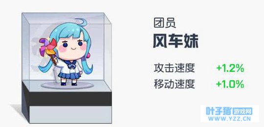 蓝色应援 风车妹:攻击速度+1.2% 移动速度+1.0% 增加移速是为了提高突袭的机动性,拥有一定移动速度的突袭能够更好的接近敌人并且以最快的速度刺杀成功,增加攻速保证突袭进行刺杀时的同时还有一定的逃跑能力。