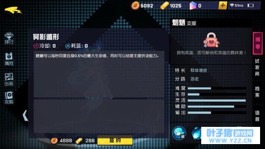 第一步,技能走起 了解技能是了解英雄的第一步,魍魉有一被动三主动技能。 冥影遁形:魍魉可以每秒回复自身0.5%的最大生命值,同时可以给宿主提供该能力。