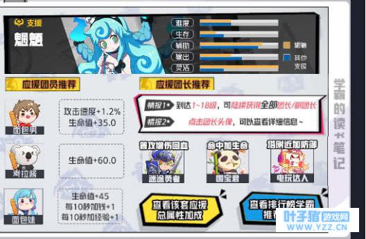 奶妈的主要任务在于在战场上为队友提供持久的治疗。所以出装上我们的原则是加生命值和防御,兼顾提升攻击力。而小编推荐的这套装备,每一件都具有加强生命值的作用。综合下来,一共可以增加4000生命值,增强60的法术防御和物理防御。另外缩减25%的技能冷却时间和加30的法术穿透,提高了魍魉的攻击力,确保魍魉在战场上有足够的自保能力。 第三步,选择你的应援团 应援团员,小编的建议是选择面包男、考拉酱和面包妹。为啥呢?因为他们都能加生命值。还是那句老话,先保命,再谈其他。 副团长,小编推荐命中加生命的国宝君和塔附近加防御的电玩达人。 在基本安全有了一定保障之后,咱们也可以考虑一下攻击的问题了。所以应援团长的选择上,小编就为大家带来了迷途勇者,普攻增伤回血,你不来一个吗? 另外还要提一下的是,面包妹具有加钱加经验的效果。如果你带上面包妹,那么整个应援团每10秒将给你带来5点经验和金钱的加成,累积起来也挺可观的呢~