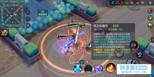 4. 三技能:好大的莲花 短暂延迟后,晓音使其范围内的友方英雄回复180.0+60.0*附近友方英雄的数目+(12%已损失生命值)+(8%晓音最大生命值)点生命值,并对敌方单位造成0+(60*当前附近友方英雄数目)(+40%法术加成)的法术伤害,此技能可与一技能共享眩晕层数,能提高一技能眩晕容错率。 觉醒效果: 技能结束的一段时间后追加一次爆炸并早场0+(60*附近友方英雄数目)(30%法术加成)的法术伤害。 晓音的三技能也是攻防一体,这个技能有非常短的前摇,基本看到脆皮低于50%了就可以考虑放了,晓音的大招能够为己方英雄回血,同时对敌方造成伤害,队友越多效果越强,所以在开团时晓音的大招可以发挥很好的作用。