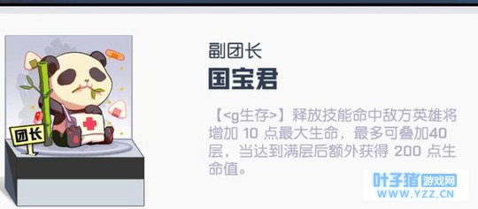 国宝君: 释放技能命中敌方英雄将增加10点最大生命值,最多可叠加40层,当达到满层后额外获得200点生命值,国宝君极大的提高了晓音的血量,配合二技能增加伤害,大大增加了晓音的生存能力。