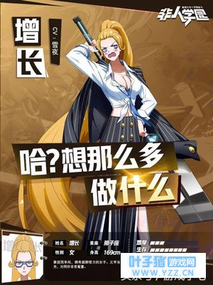 3、还有就是最近登陆的新英雄“增长”名字取的真够搞的,不愧是非人学园,增长身穿一套高档西服,衣服没好好穿,却当成了披风,这气场很潇洒,手上挥舞着巨剑,一头长到都要拖地的头发,她到底是御姐还是女汉子?