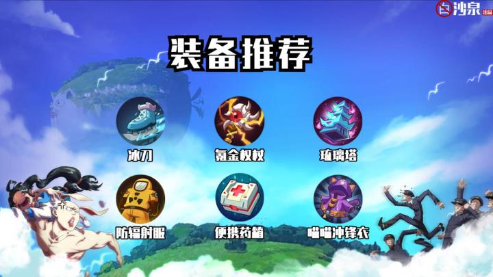 出装思路: 冰刀:减CD,有效利用前期技能的基础高伤; 氪金权杖:减CD,增加伤害移速,有效利用前期100的基础真伤打出秒杀和压制效果,换血作用显著; 琉璃塔:CD缩减达到上限,此时爆衣收益也达到较高的水平; 防辐射服:更耐揍,同时回蓝已经可以满足技能蓝耗的需求; 便携药箱:增加续航能力,同时可以让被动平A多出90的真伤; 喵喵冲锋衣:进一步增加坦度; 愿大家: 顺风不浪,逆风不投。 好友一同,快乐非人。