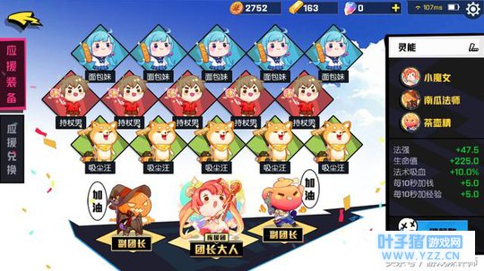 (出装3) 说明:如果你觉得对面突脸的英雄太多,团战时自己生存环境恶劣,可以选择这一套,输出和生存同样出色,月光宝盒与救命稻草可以给你多次容错的机会。 应援搭配: 团长方面用系统推荐的就好,小魔女(团长)+南瓜法师+茶壶精。副团长方面目前版本不推荐其他的选择,南瓜法师和茶壶精就是C位的最好搭配。 团员方面: 如果你嫌麻烦可以就带系统推荐的那一套,笔者在这里分享下个人的团员搭配。 绿色——吸尘汪(加上副团茶壶精出门有12%的法术吸血,可以保证白灵初期的血线) 红色——持杖男(直接加法强,目前不推荐其他的选择,这个加的法强最高) 蓝色——个人觉得这一块没有什么特别好的选择,如果你有多余的拍手器,可以不要系统给的面包妹,选择经验妹(出门多17点法穿和每10秒15点经验增长),只不过会脆一点,毕竟面包妹多了225点生命。这个看个人喜好吧。