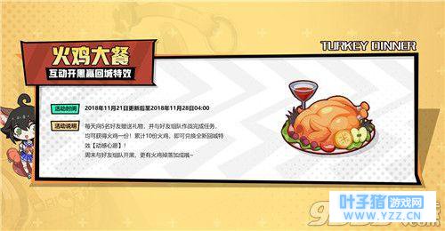同时可以通过与好友互赠礼物、组队战斗等可获得感恩节火鸡道具,兑换感恩节回城特效!完成对战任务,还将获得排位赛上分披萨,吃掉披萨获得升星铅笔、不挂科密卷等升星道具,抓住这个机会排位升星很简单!