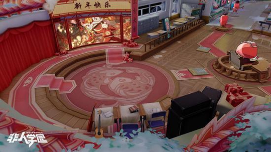 爆竹声中一岁除,金猪送暖入非都。 彩狮跃起动云霄,白雪翩飞一阵迢。 红灯新符结好运,学园新貌待君来。 新春版学园地图,带着浓浓的年味全新上线,让新年里的学园对决更加热闹非凡。随处可见的春联、福字、舞狮,衬托出过年的欢腾气氛!而战场内的大喵也穿上了舞狮装束,在主城与战场中同学们都能与这只蹦跶的舞狮一起哈皮,骑上这只小狮子去击败敌方教授吧!