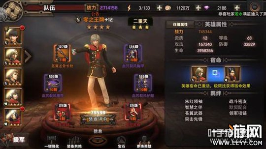 先说阵型搭配,无畏,王牌,愈合,主角,最后一个位置给寒冰或者刹那,朱雀轮回商店后面会刷新得,无畏竞技场商店有,愈合工会商店有,精魄商店主无畏,愈合,经验书,另外红色饰品精炼5有额外加成,刷图遇到过不去的就试试王牌出战,无畏抗,愈合奶,加不上来就管二队拖时间,王牌躲闪是瞬移可以脱到12秒的看你手法了,一般情况都是无畏队长,大家知晓哈,这个适合刷图,主攻一队,二队带着搞,没资源就肉,下面上图,自己打得非雇用,,万魔133了刚更新的,希望大家玩的开心