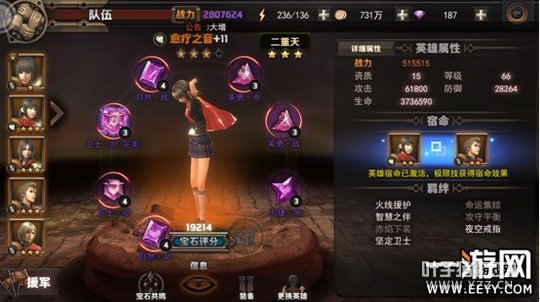 人物宝石成套搭配会有额外的属性加成。宝石搭配例子(卫士·护+卫士·命=额外加成)