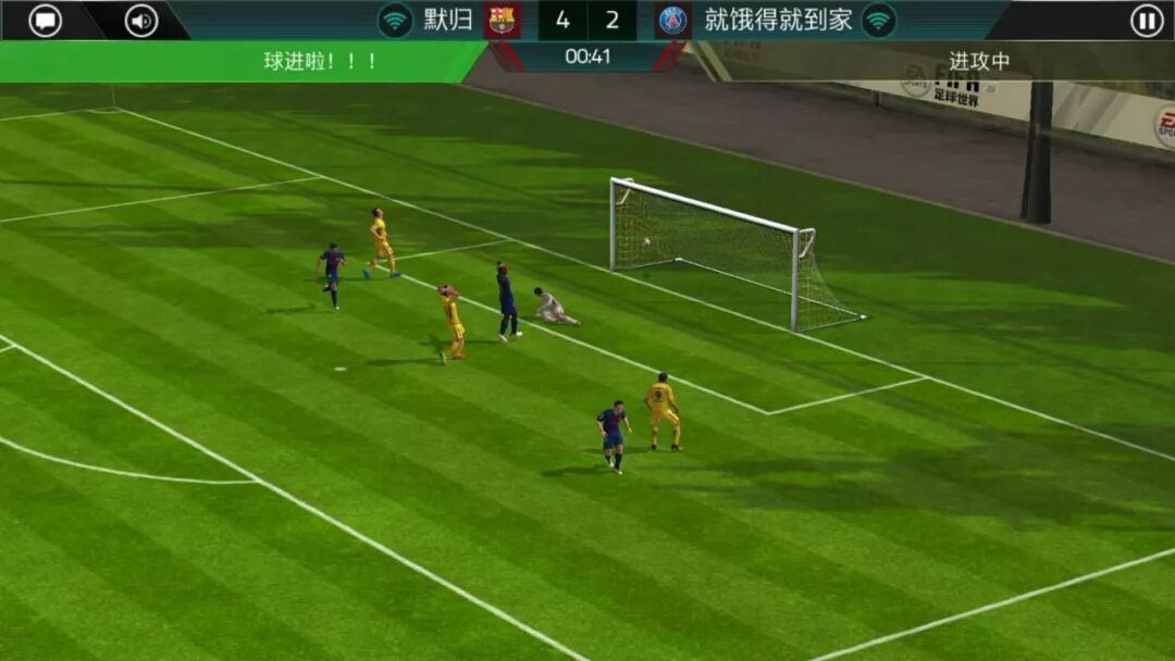 值得一提的是进攻对战依然是一场玩家与玩家之间的博弈,而且也是实时与玩家的对战。与实时对战模式不同的是,它只需要玩家控制进攻端。在1分30秒的时间里,玩家可以对对方球门发起一次又一次的进攻,每次进攻的结束以控球权发生变化为准。一旦控球权发生变化,游戏画面直接进入下一回合的进攻环节。