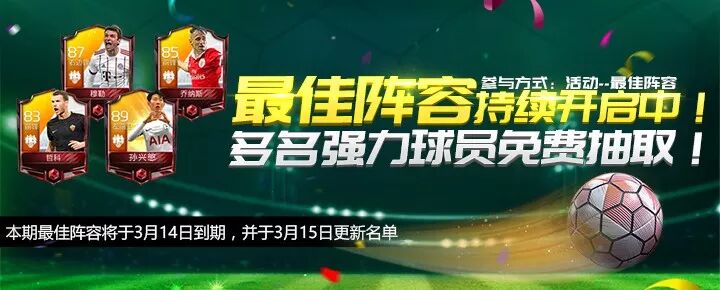 以上就是“最佳阵容”活动的全部介绍,赶快拿起您的手机,进入这个活动中体验吧!