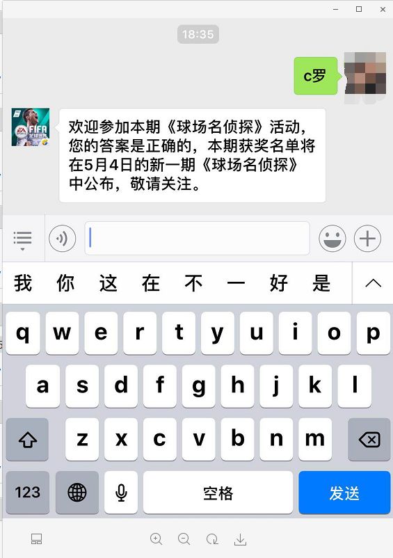 奖励娜姐会通过《FIFA足球世界》官方微信号私聊你们,给到 20企鹅币 的兑换CDKEY。