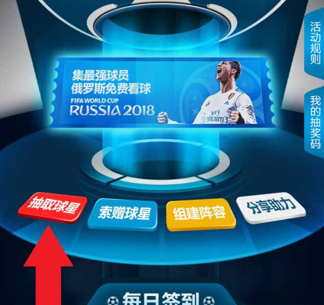 进入活动页面后,点击右上角 登陆 你的账号,再点击 签到 ,即可领取 一 次抽取球星的机会。 (娜姐提示每日都可签到一次哦)