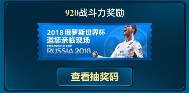 终于到了大家最最关心的 奖励 部分啦,娜姐告诉你们哦,这次的奖励和你阵容的 战力 是有关系的,战力越高,可领取的奖励越丰厚,战力达到 920 之后,更有机会抽取2018俄罗斯世界杯的 门票 哦!