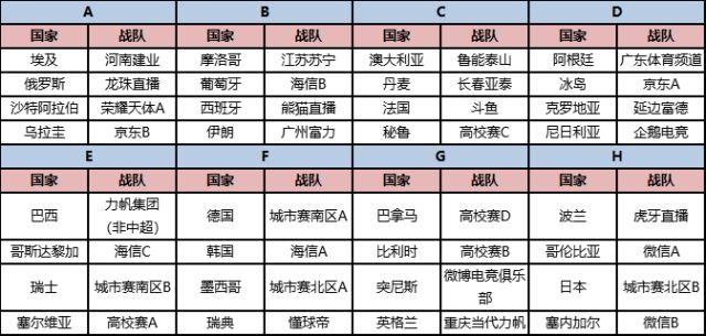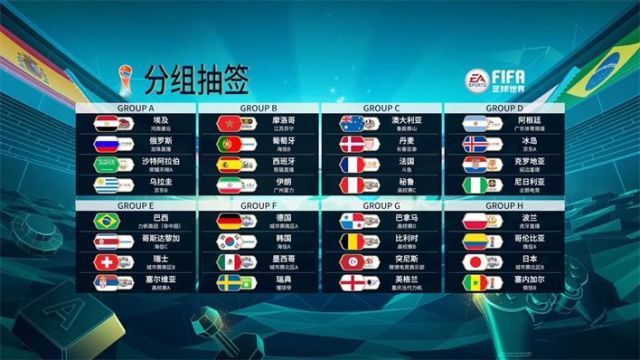 电竞世界杯抽签在6月6日完成,具体 抽签结果 如下: