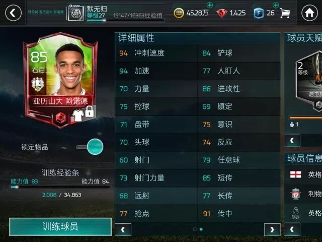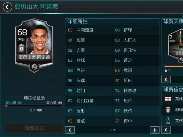 右后卫 阿诺德 利物浦 作为利物浦一名 前途无量的新星 , 年仅20岁 的阿诺德在欧冠决赛上还贡献了一 脚极具威胁的射门 。娜姐建议大家这张银卡可以提前入手一下哦~毕竟他未来的 进步空间很大 哦~ 阿诺德也是玩家推荐第一期的银卡球员,虽然他的速度比不上库库雷亚尔,但是,升级之后你会发现,他作为边后卫的 各项数据 都不比很多红卡后卫差。最关键的是,他的 传球能力很强 ,尤其是传中球。 娜姐 虽然才19岁,已经在欧冠有不错的发挥啦。