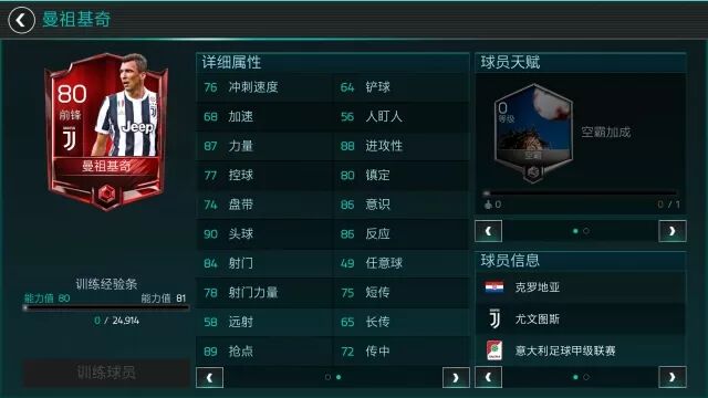 前锋: 曼朱基奇 曼朱基奇是一位典型的 禁区终结者 ,他在禁区的进球能力非常强,而且他的射门方式不只有争顶或者抢点。他 效率很高 ,总是有效得利用出场时间进球。而这种能力对于拥有一众世界顶级中场球员的克罗地亚来说,是一个非常不错的 锋线配置 。 游戏翻译与现实有出入 除了射手之外,曼朱基奇也是一位 “防守型”前锋 ,他在防守中非常努力,尤其是对 高空球的防守 。