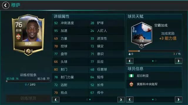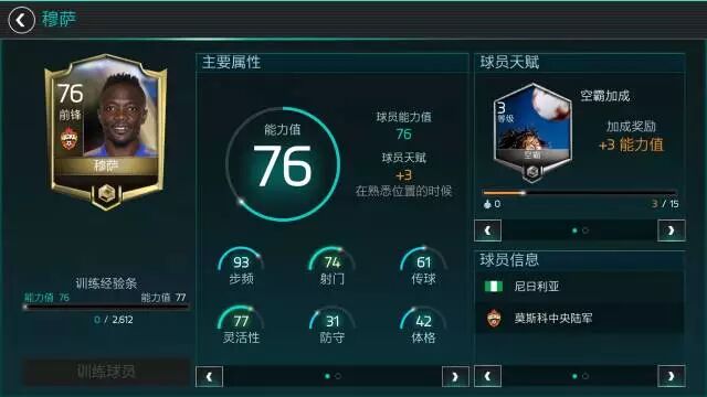 在 FIFA足球世界 中 ,穆萨也是个较为优秀的球员 ,他的总评达到了76。