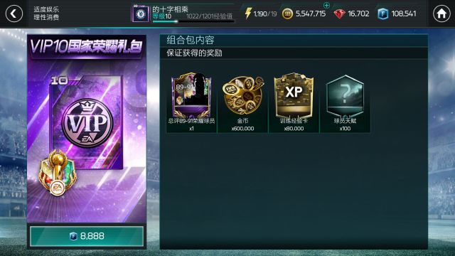 商品内容: 金币900,000 训练经验卡120,000 球员天赋 240