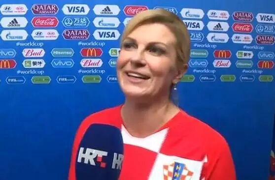 这位热衷于足球的女总统在接受采访时表示自己很期待球队能在加时赛之前解决战斗,不过还是要祝贺球员们最终赢下了比赛,他们带给克罗地亚人民的是 快乐与自信 .。