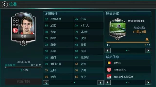 升级 升级之后的拉曼,步频依然超快。但如果我们认为他只是靠速度吃饭的,那就大错特错了! 控球83,盘带88,远射80,传中80......似乎一切左前卫主要 需要的属性 他都不低,有的时候甚至比一些初始卡为红卡的球员能力值还要高!简直是左前卫中隐藏的大佬啊有木有!