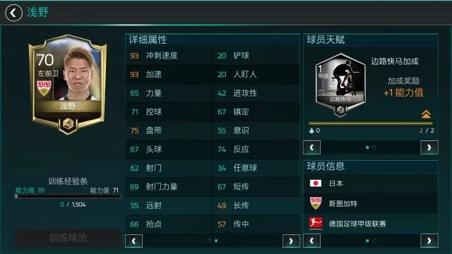 这个时候娜姐也留意到了他的 其他数值 ,似乎也不差,不过具体如何我们还需要借助外力将球员 升级 一下。