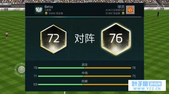 比赛画面一开始,则会显示玩家与对手的各项数据对比,球迷数和所在联赛等等信息。
