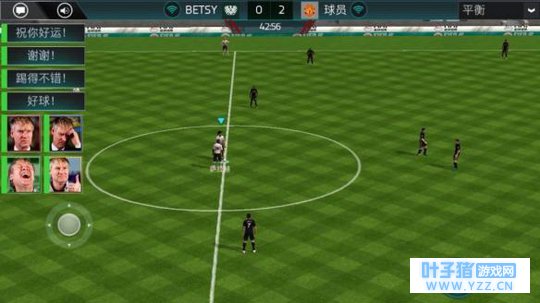 而在画面的左上角,则是交流系统,玩家可以点击发出相对应的用语,如祝您好运,谢谢,踢得不错,好球等用语。如被进球的时候可以回复踢得不错,好球等用语,增强了游戏的趣味性。