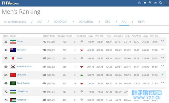 虎扑3月15日讯 FIFA公布了最新一期的国家队排名,国足世界排名上升3位来到第65位,亚洲排名则反超沙特,上升至第5。 在亚洲排名中,伊朗、澳大利亚、日本、韩国依然位居前4,上个月的亚洲第5沙特世界排名下降5位,被中国队反超后跌至亚洲第6位。乌兹别克斯坦、巴勒斯坦、叙利亚、阿联酋名列亚洲第7至第10位。 2019年亚洲杯抽签将在2018年4月27日进行,本次亚洲杯扩军24支球队后将分为6组。由于东道主阿联酋已经自动成为种子,因此亚洲前5的球队才有资格成为本次亚洲杯的种子队。 国足若想在本次抽签中成为种子队,则必须要在下个月中至少保持住现在的亚洲排名,本月晚些时候进行的中国杯也因此显得格外重要。而沙特则将在本月的国际比赛日中与乌克兰和比利时进行两场热身。