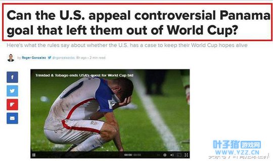 CBS体育评论:巴拿马这个进球,实在让人震惊,实在是不公平,没有门线技术。诚然,足球比赛存在人为的误判,但美国足协就不能为自己争取利益吗?根据中北美及加勒比海足联的规章,如果遇到直接影响比赛结果的判罚,21天之内可以提出上诉。