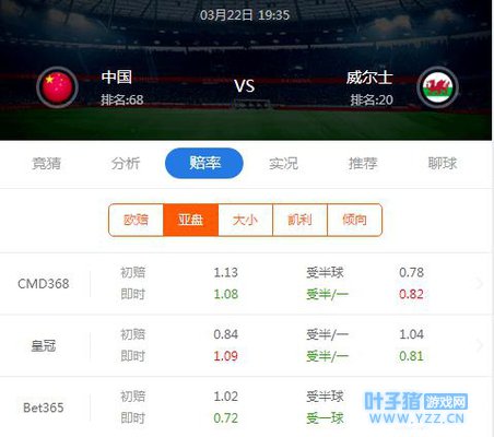 第二届“中国杯”足球赛即将于3月22日晚拉开战幕。届时中国国家队将在广西体育中心迎战由皇马大将贝尔领衔的威尔士队,双龙会到底孰弱孰强?百盈足球与您一起见证。百盈足球App为本场比赛带来的前瞻分析,仅供彩民参考,不作为投注建议。 中国分析: 中国男足目前的FIFA积分为508,排名世界第65,亚洲区第5,比上一期升高3名。男足世预赛十强赛排名A组第5,无缘俄罗斯世界杯,球队上届中国杯获得第3名。 和往常一样,本次男足大名单中,恒大球员仍旧占据半壁江山。而队中目前身价最高的球员武磊新赛季8场各项赛事已经打进8球,更有上演过大四喜的精彩表现,可以说状态正佳。 男足近10场各项赛事3胜3平4负不败率60%,在东亚杯2平1负表现尚可,其中还2-2逼平强队韩国。 首堂训练课中,主帅里皮对以往的内容进行了复习,对于几名新人,教练组还给予重点照顾,备战较为充分。 威尔士分析: 欧洲劲旅威尔士男足目前FIFA积984分排名世界第20,欧洲区排名第14,与上期相比排名没有变化,表现稳健。 由于在本届世界杯预选赛阶段表现不佳,在D组中仅排名第三,同样无缘参加俄罗斯世界杯。 威尔士男足公布的大名单中,皇马球星贝尔、阿森纳球星拉姆塞入选。此外伍德伯恩、本·戴维斯和乔·阿伦等英超名将也入围。 威尔士最近3个客场比赛中2胜1负,只在热身赛中0-2不敌强队法国,赢球的2场比赛都零封了对手。