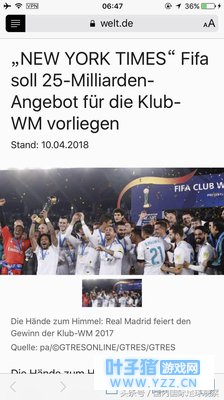 据德国媒体报道,FIFA世界俱乐部杯赛有可能将来在夏季举行。世俱杯有可能扩军到24支球队,并改为每四年举办一次。FIFA在今年年初收到了将世俱杯带到沙特阿拉伯和中国的邀请。世俱杯将来有可能在中国举办。如果世俱杯在中国举办,广州恒大、上海上港等中超球队有望在中国参加世俱杯赛(外媒消息仅供参考,以官方消息为准)。