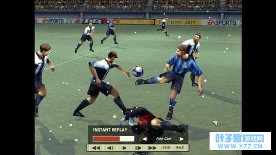 EA的第二个世界杯FIFA游戏,由于在日韩举行比赛,包括游戏的解说和背景音乐在内的很多元素都是十足的亚洲风。但游戏不幸在德国被禁,因为拜仁慕尼黑和传奇门将卡恩状告EA侵犯其肖像权。(其实EA已经向国际足联买断了球员的肖像权了) FIFA FOOTBALL 2003 (2002) 游戏平台:PS2,GameCube,PlayStation, PC, Xbox, GBA 封面球星:Roberto Carlos, Ryan Giggs, Edgar Davids