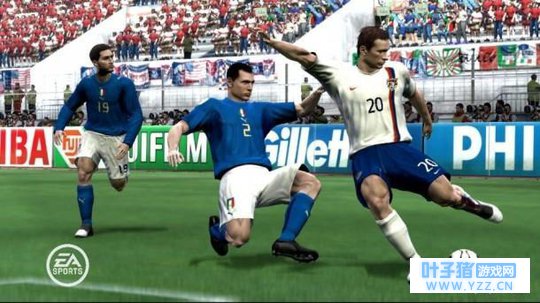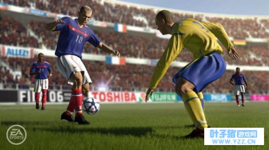 这是EA的“第三届”世界杯了,游戏收录了全球127支国家队,40个世界杯经典场景和一个可以购买装备的虚拟商店。本作被认为是第一个在XBOX 360上像模像样的足球游戏。 FIFA 07 (2006) 游戏平台:Xbox 360, PS2, Xbox, GameCube, PC, PSP, DS, GBA, mobile 封面球星:Wayne Rooney and Ronaldinho