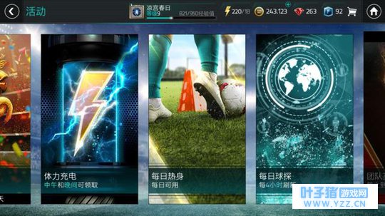 其他1.点击 玩家头像 就可以进入个人资料。 2.设置里面可以更改球衣、球场、球队队徽等。 3.活动里固定的活动为球探、体力充电和每日热身。 4.宝石可以购买体力、金币、球员以及经验,还可以 在球探里寻找球员 ,宝石可以通过剧情、成就以及活动获得。