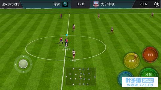 《FIFA足球世界》的操作方式与大多数动作类手游像是,屏幕左下方的虚拟方向键可以控制角色的移动,屏幕右下方是各式各样的功能按键,在已放持球和对手持球的状态下都会切换不同的功能,对于刚接触这款游戏的玩家来说稍显繁琐。值得一提的是,功能区的按键设计较为紧凑,在实际的体验过程中误触的现象时有发生,体验较差。