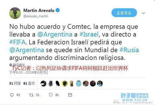 突发!以色列将向FIFA告状:把阿根廷赶出世界杯!