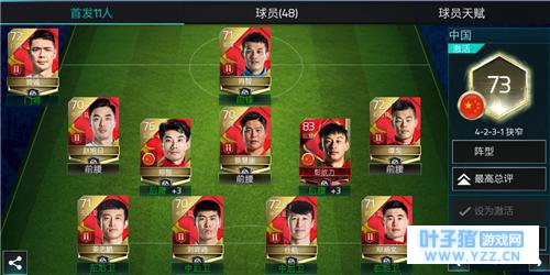 我们点击我的国家队,在右下角选择阵容就能看到目前我们拥有的国家队阵容了,然后我们选择中国队。随后点击查看,再点击确认激活阵容就能够完成阵容更替了。 中国FIFA世界杯之旅: