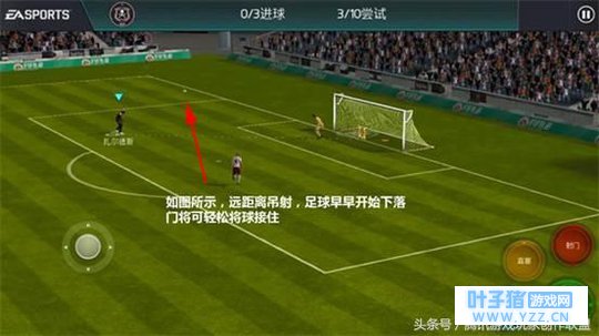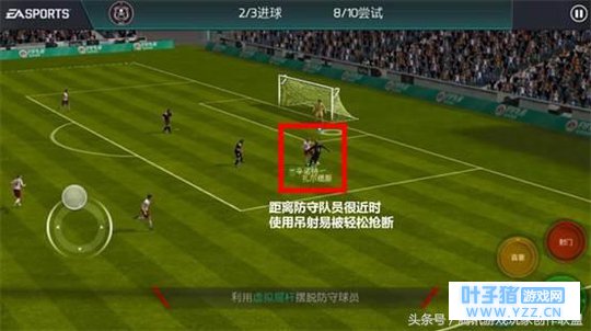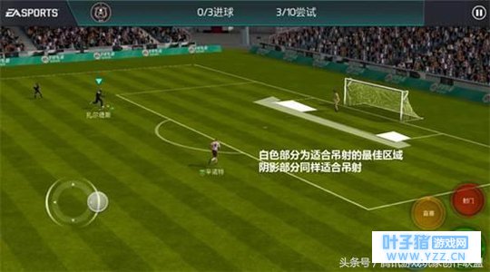 除此之外,在球门区的左右两侧靠前的位置,是吊射命中率最高的位置。在此位置,玩家一旦能够完成吊射的操作,命中球门的几率就会变得非常大! 不适合使用吊射的时机 虽然吊射的命中率极高,但它有一个致命的缺点,即出球速度慢、操作时间长。由于玩家需要先寻找皮球合适的落点,随后在用手指点到相应的落点,所以在完成吊射的过程中,会浪费很多的时间,加上吊射自身出脚速度并不是特别快,故而在距离防守队员和门将非常近的时候,并不建议使用吊射破门。这时候使用吊射,有大概率被对方抢断或是被门将直接扑住。