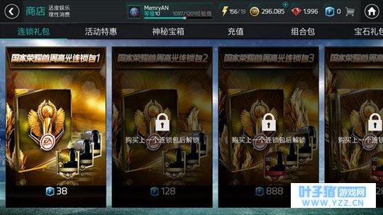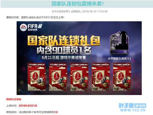 现在新推出一个类似福利的活动,你想要一个90分的球员,首先你需要买一个3.8元的一级连锁包,这样才能解锁12.8元的二级连锁包,然后以此类推,48.8元的三级包,128.8的四级包,最后可以解锁288.8的五级包,其中包含了一个90分的球员。这样算下来一个90分球员价格是在483块钱。是不是感觉很便宜,后生仔,你还是太年轻了哟,要知道,这还算是福利活动,亏本出售的哟,只限一次。