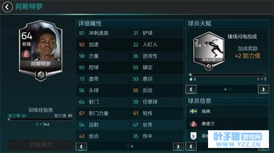 不起眼的超级速度妖人 阿斯特罗 众所周知,442阵型需要拥有两位前锋,那么在扎尔德斯如此耀眼的情况下,找到一个和他速度属性相匹配的前锋并不容易,尤其是妖人!因此,在这里我们推荐阿斯特罗。 能力值只有64的阿斯特罗,初始步频就有89点,这可是系统C罗在80+能力值都达不到的属性。 虽然其他属性差了些,但仅凭这一个属性,阿斯特罗就足够和扎尔德斯搭档。