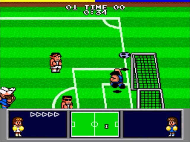 《热血足球》 《热血硬派》给我留下了非常深刻印象,充满街斗元素、以拳头解决问题这正是热血的源头。也因为游戏大受欢迎,因此Technos Japan在正传《热血硬派》以外也开发更多外传游戏,《热血足球》正是其中之一。 《热血足球》最好玩的除了可以在球场打架(但不可以像苏亚雷斯咬人或马勒当拿举中指),还有就是加入了夸张的必杀技射球,而且每一队的必杀技也有所不同,既有香蕉射球也有遁地射球,还有垂直跳起射球、蜻蜓点水射球,系列续作还越来越“皮”,例如在吊射时变了鱼或马等,而我最喜欢用的是冲力射球,就像任何球队对沙特阿拉伯一样,两个字:稳胜!