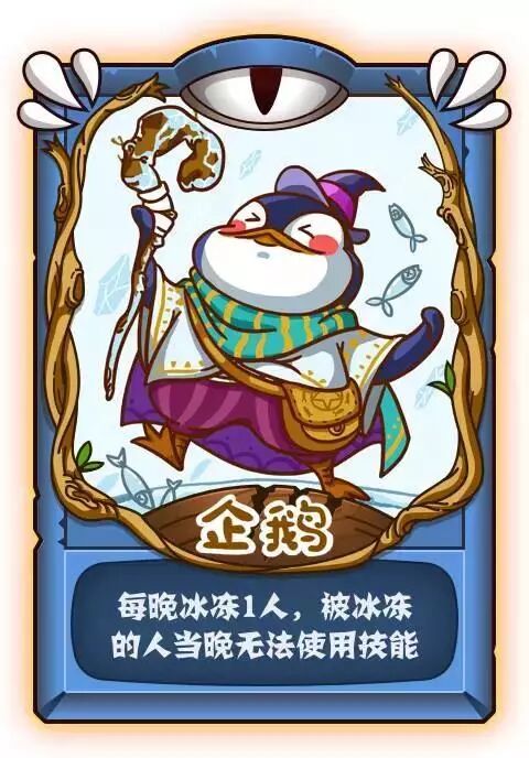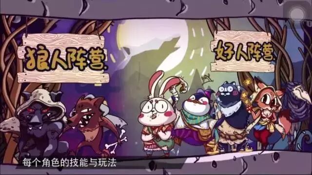 先回顾一下角色配置 狼人阵营 狼人X2、黑狼王 好人阵营 神职:熊、企鹅、乌鸦;非神职:兔兔X3 接下来请看新角色的技能介绍~