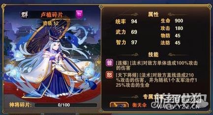 羁绊来说,目前能激活3条羁绊,有点少。20%攻击,20%生命和30%防御。等左慈和公孙瓒出来,卢植才能上天。羁绊虽然不足,但是技能优秀。特性来看,进阶6普攻后回神将80%的血,硬生生让卢植变成奶妈,虽然比正统奶妈少,但是比奶妈的优势在于其有输出。进阶8就是刘备的被动啊,这个被动非常好用,关键时刻触发减怒,可以让对方怒气技能慢放1回合,从而给自己制造输出机会。进阶10,每减少10%生命就减伤6.4%,理论最大值57.6%,不过基本达不到这么高,残血估计减伤在45%左右,也相当可观。这让残血的卢植非常的肉,而且配合自身的加血,可以让自己站的很久。 从目前来看,卢植非常完美,集合输出,治疗,辅助为一体。虽然不适合毒阵流,但是凭借强大的辅助能力,个人觉得是可以上阵的。如果有用华佗的话,直接用卢植代替就好。目前拿卢植代替董卓也是个不错的选择,毕竟加暴击暂时效果没那么大,当然更具体的阵容组合还需要再进行实验研究。 [编辑:叶子猪小秘书]